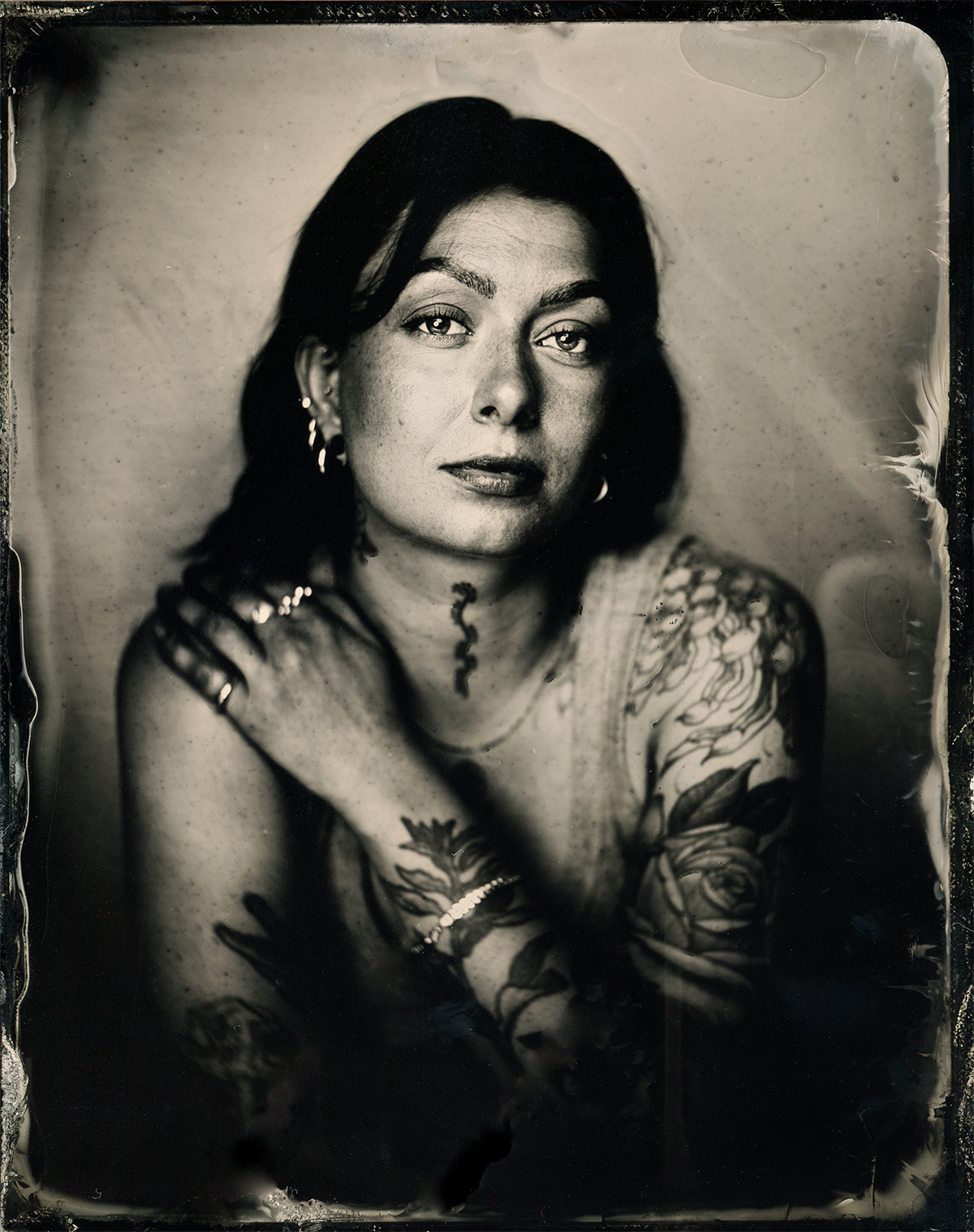 Wet Plate Collodion er en af de første fotografiske processer fra 1851. Wet plates er fotografier taget på glasplader eller sorte aluminiumsplader med et kamera der kan tage filmkassetter, typisk et gammeldags storformat kamera.